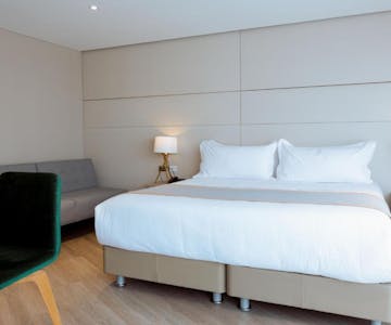 Charming double room of 25mt2 has a king size bed with flat screen cable TV, private bathroom with hot water, ameties, hairdryer, and balcony overlooking the city.